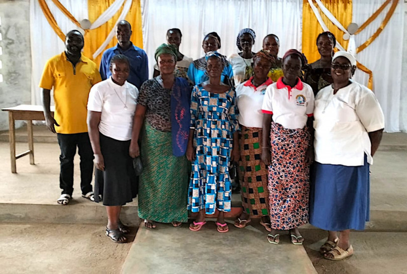 Eccola nel gruppo dei volontari della sofferenza. La prima a sinistra con camicetta bianca. L'ultima a destra è la consorella Marie Kossi. Dal Togo Elisabetta saluta tutti i casalesi e gli ammalati da lei curati.