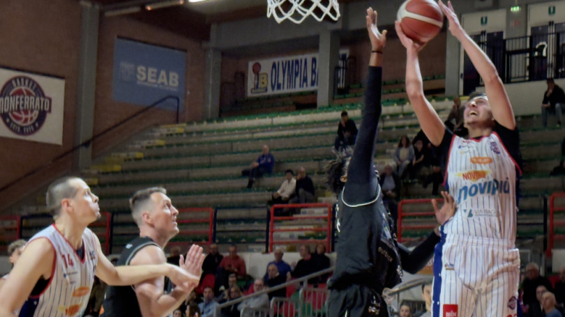 Dopo la soste della scorsa settimana per le finali di Coppa LNP, la Novipiù MB torna al "PalaFerraris" per affrontare la Rucker San Vendemiano, seconda in classifica e costruita con l’obiettivo di lottare per a promozione. Nonostante due sconfitte consecutive nelle ultime giornate (seguite però a un "filotto" di 14 vittorie), San Vendemiano è una squadra fisica ed esperta. La Novipiù, dal canto suo, è reduce da due affermazioni convincenti e punta a consolidare i propri schemi in vista della fase finale del campionato. L’inizio di partita è spettacolare: alle giocate individuali di Zanzottera, i veneti rispondono con un gioco di squadra più organizzato e concreto, trovando solidità sotto canestro con Onojaife. Anche il secondo quarto mantiene le aspettative, con la Novipiù concentrata in difesa e la Rucker che mostra a sprazzi la sua pericolosità e varietà di soluzioni. Nel secondo tempo, il match si fa teso ma non perde spettacolarità. San Vendemiano prova a mettere fisico e "tonnellaggio", ma Rupil e Marcucci sono glaciali e regalano alla Novipiù la terza vittoria consecutiva.