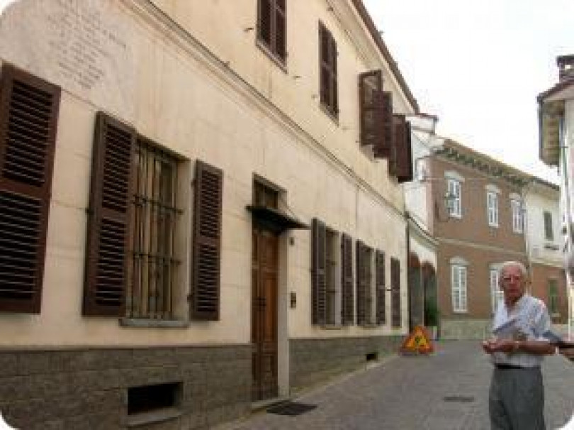 G. B. de Rolandis e la casa natale di Castell'Alfero, a destra l'ultimo discendente, il giornalista Ito de Rolandis (f. Angelino)