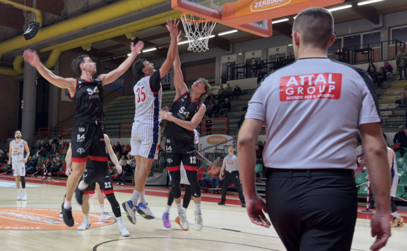 Alla “Prealpi San Biagio Arena” di Conegliano, la Rucker San Vendemiano di coach Federico Campanella (che ha rilevato in panchina Daniele Aniello a campionato in corso) affronta la Novipiù, rinforzata nel reparto ali dall’arrivo del promettente Kesmor Osatwna, classe 2004 ed ex A2 con la Reale Mutua Torino. Entrambe le squadre, reduci da un inizio di campionato difficile, cercano in questa sfida riscatto e punti importanti. Nel primo quarto, entrambe le contendenti non si risparmiano nel trovare soluzioni offensive, provando diverse tattiche. Nella seconda frazione, San Vendemiano prende il sopravvento allungando fino a +24, con Tassinari e Cebasek che trovano con continuità canestri da tre punti. Pagani difende bene su Martinoni, a volte eccedendo nell’intensità del contatto fisico riuscendo comunque a limitare il capitano rossoblu. All’intervallo, il vantaggio della Rucker è consistente: 52-34. Al rientro negli spogliatoi i veneti mostrano tutto il loro cinismo nel tenere basso il ritmo e sotto controllo l’inerzia del match. Nel terzo quarto il match è “in ghiaccio” per San Vendemiano; un mega parziale di 16-0 della Novipiù all'inizio dell’ultima frazione porta però i ragazzi di coach Corbani a crederci. Un eccesso di frenesia e un fatale calo di energie condannano però la MB alla quarta sconfitta consecutiva: 87-66 il risultato finale.