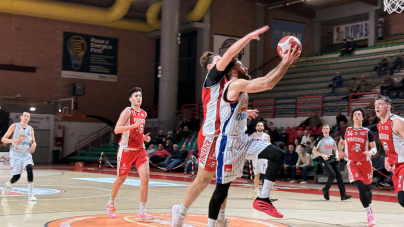 Dopo la sofferta quanto importantissima vittoria infrasettimanale contro la Bakery Piacenza, che ha dato alla Novipiù due punti preziosissimi per cercare di evitare la retrocessione diretta, i ragazzi di coach Corbani concludono l’intensa settimana con la trasferta di Castell’Arquato contro Fiorenzuola Bees. In classifica i piacentini di coach Marco Del Re hanno un vantaggio di 12 punti sui rossoblu. All’andata, Fiorenzuola aveva nettamente superato Novipiù per 69-84 al “PalaEnergica”. Il primo tempo è caratterizzato da un grande equilibrio; continui botta e risposta tengono vicine nel punteggio le due squadre.Nel terzo quarto la Novipiù prova a mettere la freccia e, con una notevole attenzione difensiva, trae profitto da tutto l’estro di Zanzottera in transizione. Fiusco e Osatwna portano la MB fino al +10, ma Fiorenzuola non ci sta e negli ultimi minuti, con Cecchi, Ambrosetti e Mariani, trova l'88 pari sull'ultima sirena mandando la partita al tempo supplementare. L’overtime è spettacolare: Fiusco realizza due triple consecutive ma rischia di rovinare tutto facendosi stoppare malamente a sette secondi dalla sirena. Risolve tutto Marcucci, che sfrutta al meglio uno schema rodato che libera il lungo sotto canestro nelle rimesse dal fondo. La MB, a sorpresa, può così festeggiare la seconda vittoria consecutiva.