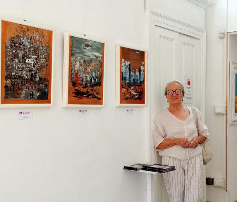 I soggetti preferiti nella sua sempre attuale pittura ad olio si riflettono nei dipinti su rame, assumendo una valenza concettuale estetica e sorprendente». Davvero un bel risultato per un’artista che è arrivata all’arte pittorica dopo aver terminato il suo percorso nel mondo del lavoro prima come impiegata, come poi imprenditore in un settore non facile per una donna come quello dell’edilizia negli anni Settanta ed Ottanta.