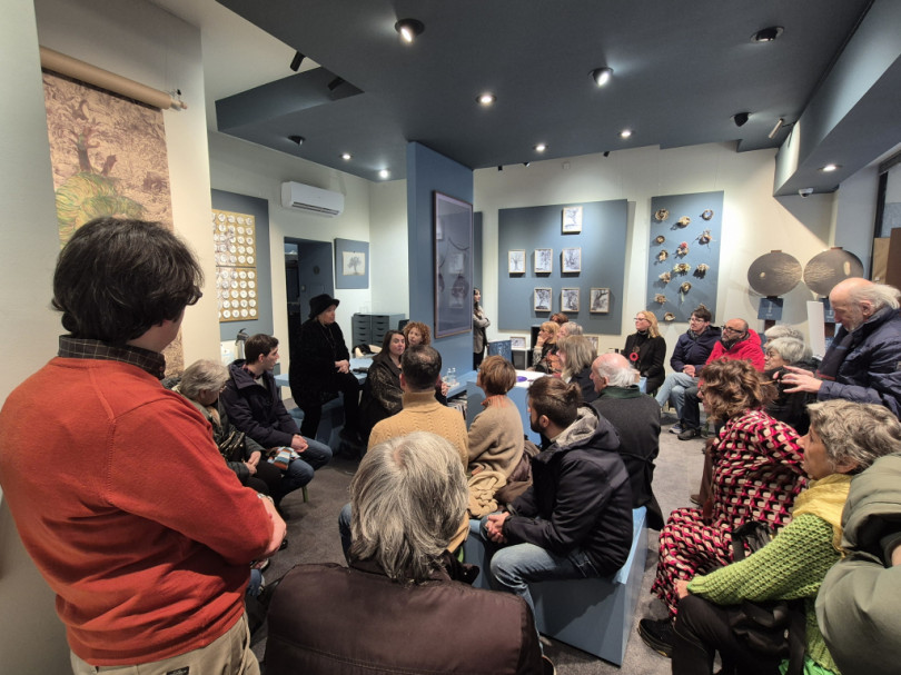 Sabato 24 gennaio non c’era un posto libero nella galleria di Rossella Filippini (che ha annunciato, per i prossimi mesi, una nuova modalità di concepire la galleria, mutando in Fondazione) per il vernissage della bella mostra Cosmogonia. Un contatto dell’Uomo con la Natura, quello che emerge dalle maestose opere realizzate con una “semplice” penna Bic, come il Nidus Mundi, che vede un cuore umano avvolto da flora e fauna...una parete che ti fa rimanere a bocca aperta, così come assi lignei che vengono decorati anche qui dalla famosa penna a sfera, come miniature dei monaci amanuensi.