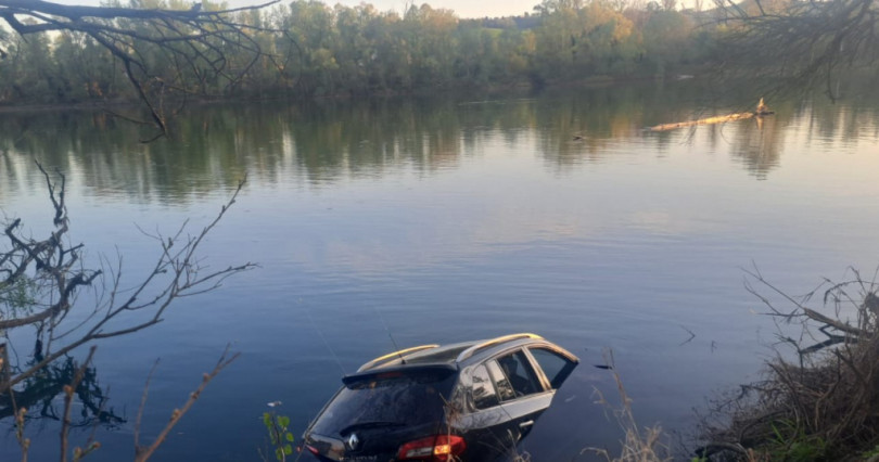 Probabilmente a causa dell'assenza di freno a mano, la loro auto, una Renault Koleos, è finita in acqua a riva del fiume, finendo sott'acqua per buona parte.