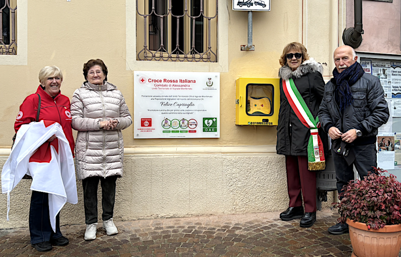 Accanto al dispositivo salvavita, Croce Rossa e Amministrazione Comunale hanno apposto una targa commemorativa: «Nel ricordo del Volontario CRI Felice Caprioglio, promotore e anima che per primo volle credere e intraprendere questo cammino nella sua Vignale», si legge nella dedica. All’affollata cerimonia, oltre alla famiglia di “Nonno Felice”, hanno preso parte, fra i convenuti, la Presidente del Comitato CRI di Alessandria Valeria Ghelleri e il predecessore Marco Bologna, che con il compianto volontario vignalese lavorò a stretto giro per lunghi anni, su e giù dalle ambulanze, giorno e notte, e nei territori colpiti dalle calamità naturali.