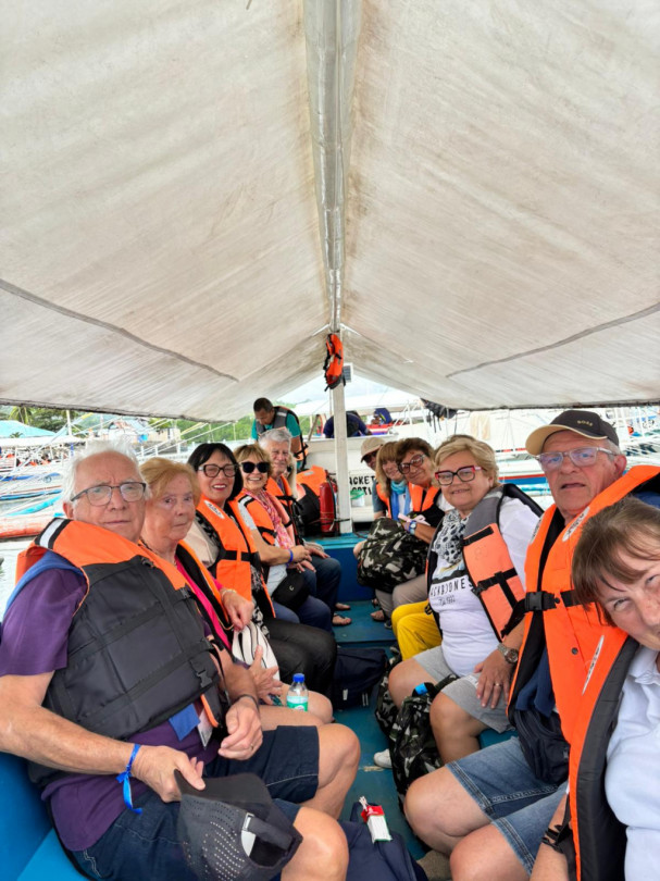 Crociera Il Monferrato-Stat. Mercoledì 11 ecco le Filippine, isola di Palawan, sbarco a Puerto Princesa. Tutti in barca per l’escursione ‘Honda Bay: isola per isola verso il Paradiso’ Non manca il bagno in mare; al pomeriggio visita alla capitale compresa la cattedrale dell’Immacolata. Giovedì e venerdì navigazione (e a cena continueranno a festeggiare con torte speciali anniversari di matrimonio e compleanni).