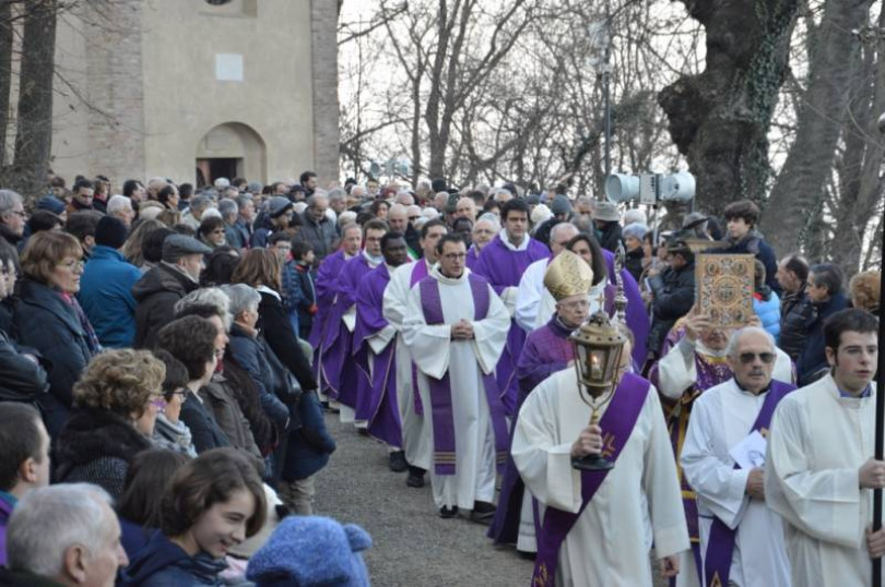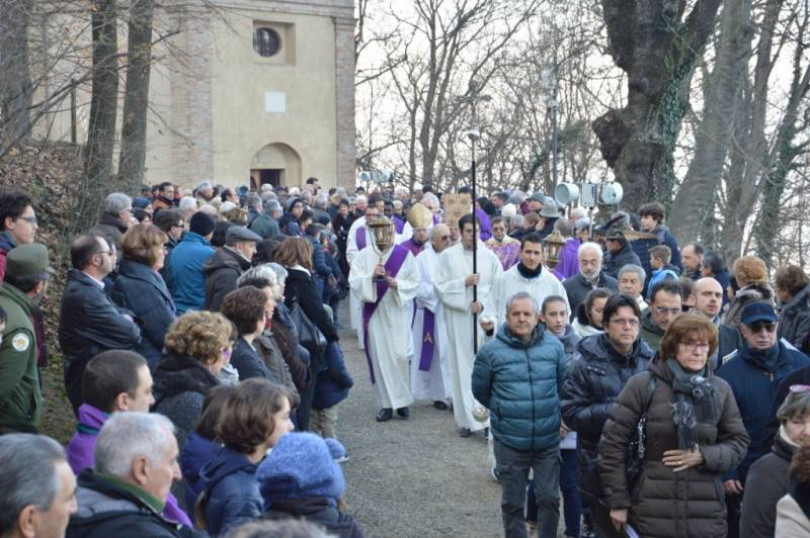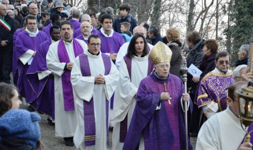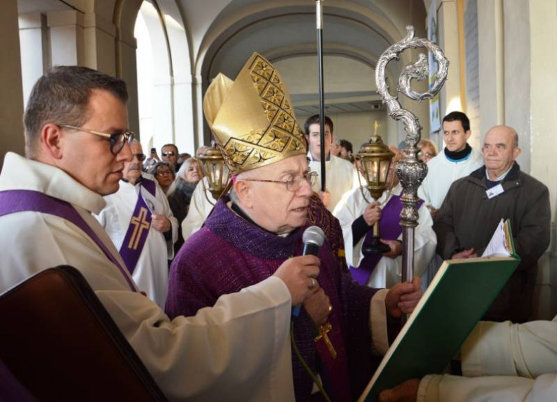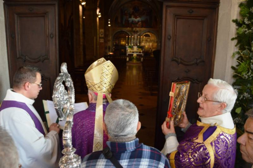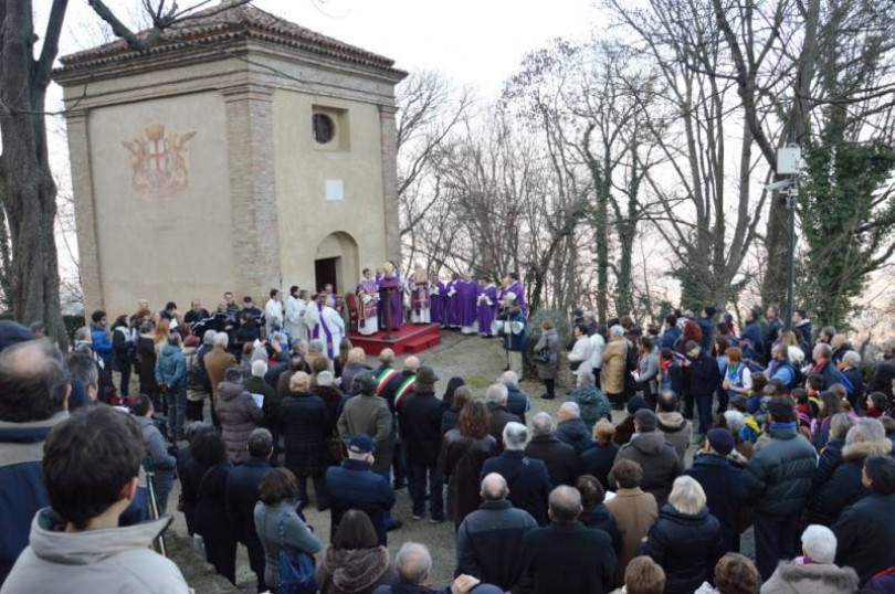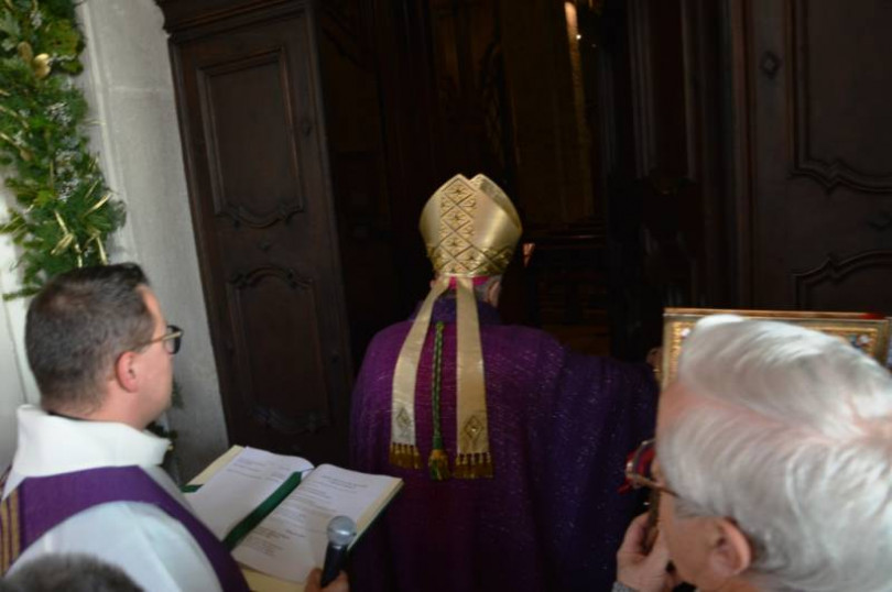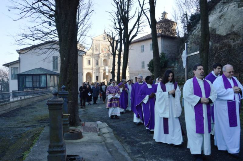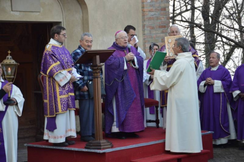 Il vescovo di Casale, Alceste Catella, ha aperto la porta santa di Crea