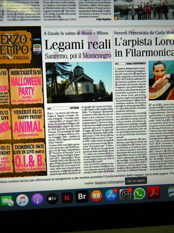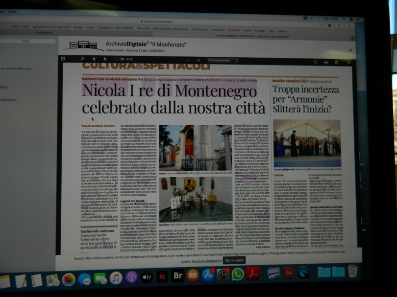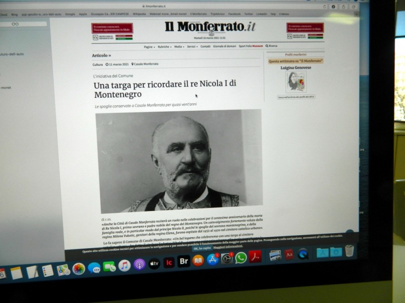 Il Comune di Casale partecipa alle celebrazioni per il centesimo anniversario della morte di Re Nicola I, primo sovrano e padre nobile del regno del Montenegro. Lo conferma in un comunicato e ce lo ribadisce mercoledì Alessio Butti consigliere diplomatico di Nicola II.