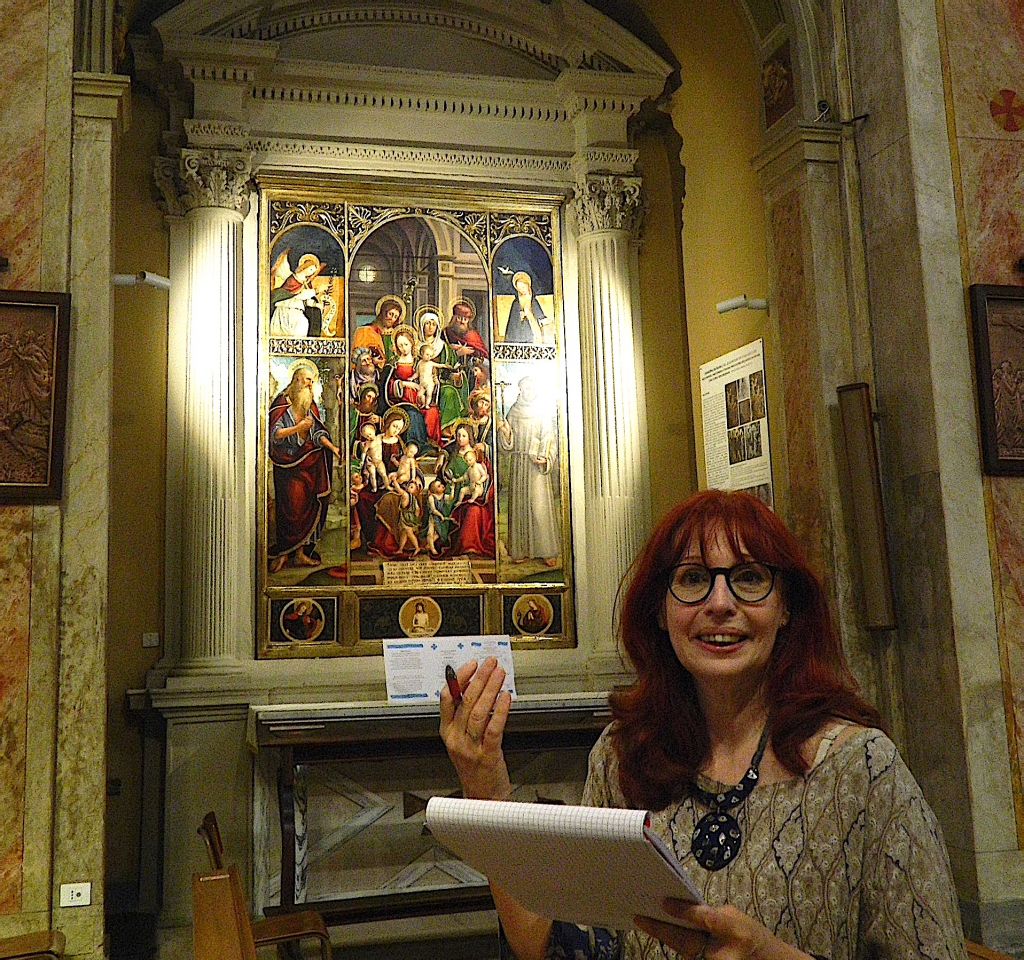 Costruita per volontà dei frati antoniani nel corso del XVI secolo, l’edificio custodisce ancora oggi preziose testimonianze storiche e artistiche relative ai numerosi passaggi di proprietà e di committenza susseguitesi nel corso dei secoli che hanno visto, tra gli altri, la partecipazione di molte famiglie nobili monferrine, dei frati francescani e dell’amministrazione comunale della città. L’incontro ha permesso di ammirare da vicino opere di significativa bellezza come il polittico realizzato dal pittore astigiano Gandolfino da Roreto che raffigura un tema poco noto e poco diffuso (soprattutto tra le opere successive al Concilio di Trento) quale quello della “Genealogia della Vergine”, le tele di ambito moncalvesco e il settecentesco coro ligneo.