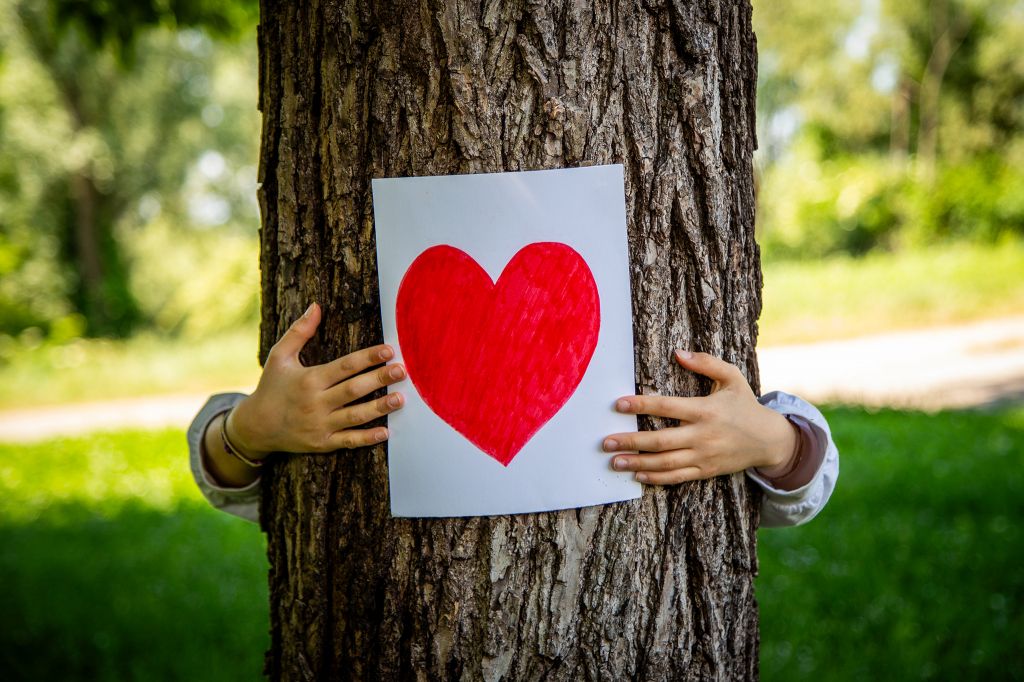 Pianta il futuro: bambini che interagiscono con alberi e piantine, simbolo di crescita e attenzione per l’ambiente;